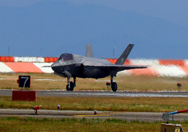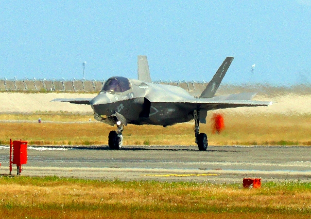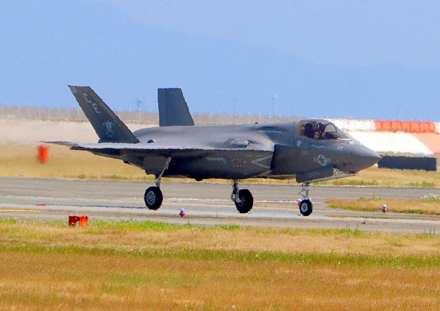 米海兵隊 F-35B ライトニングⅡ 戦闘機(岩国基地)、CE、08番機が着陸 |