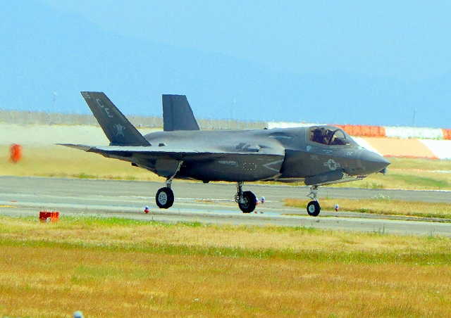 米海兵隊 F-35B ライトニングⅡ 戦闘機(岩国基地)、CE、06番機が着陸 |
