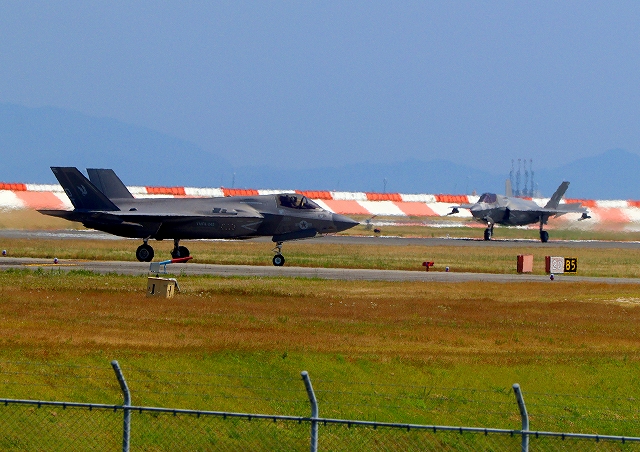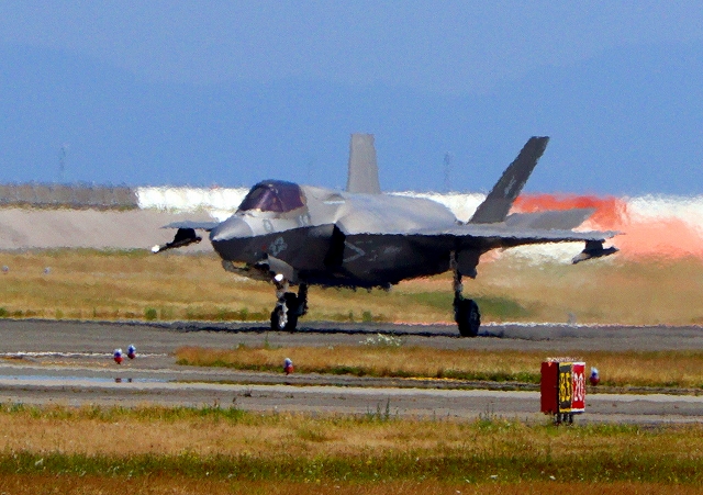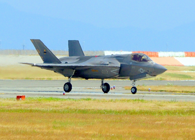 米海兵隊 F-35B ライトニングⅡ 戦闘機(岩国基地)、DT、01番機が着陸 |