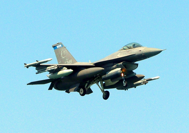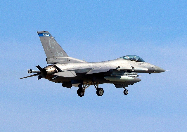 米空軍 F-16 戦闘攻撃機 ファイティング ファルコン、AF、91-0349番機が飛来 |