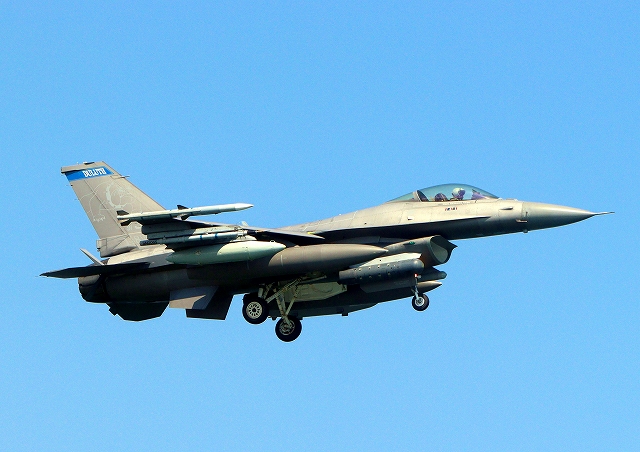 米空軍 F-16 戦闘攻撃機 ファイティング ファルコン、AF、91―0410番機が飛来 |