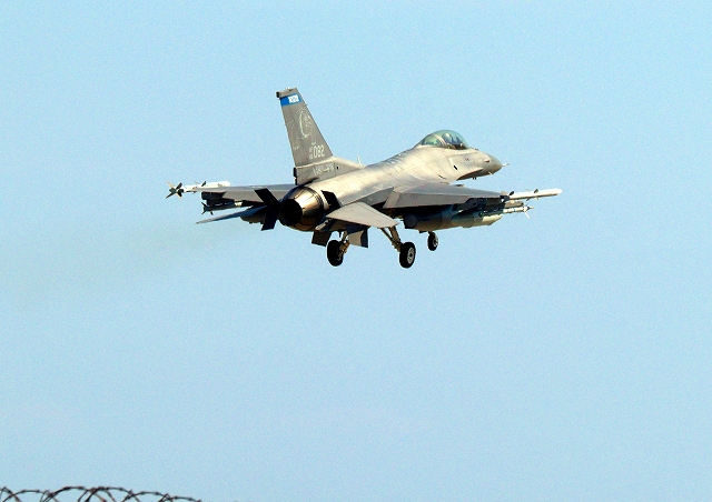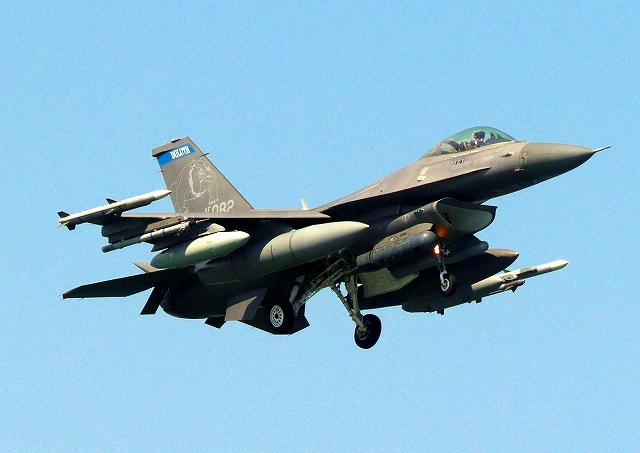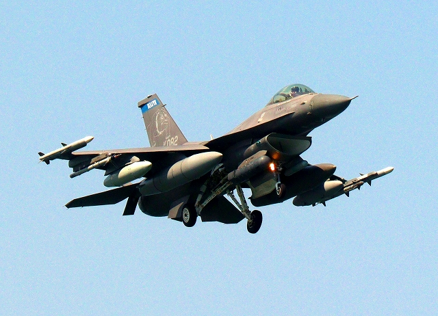 米空軍 F-16 戦闘攻撃機 ファイティング ファルコン、AF、88-0082番機が着陸 |