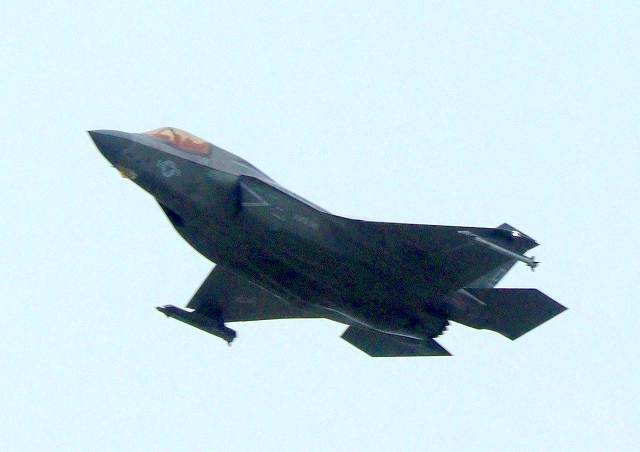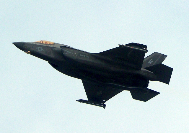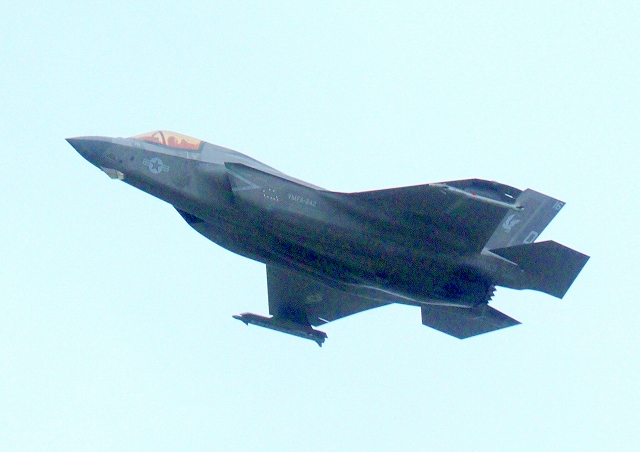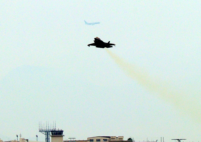 米海兵隊 F-35B ライトニングⅡ 戦闘機(岩国基地)、DT、15番機が離陸 |