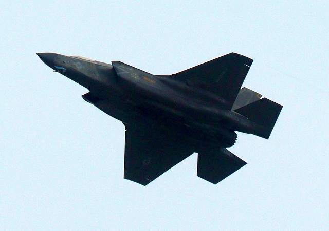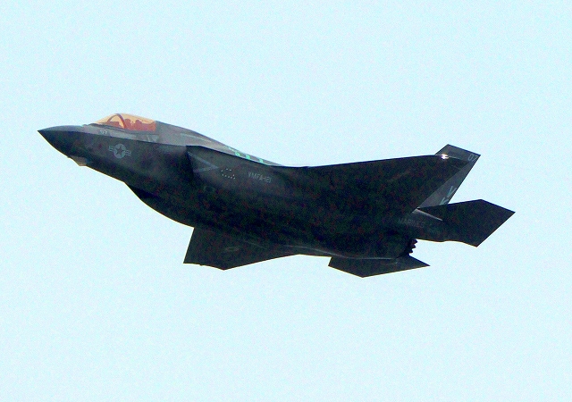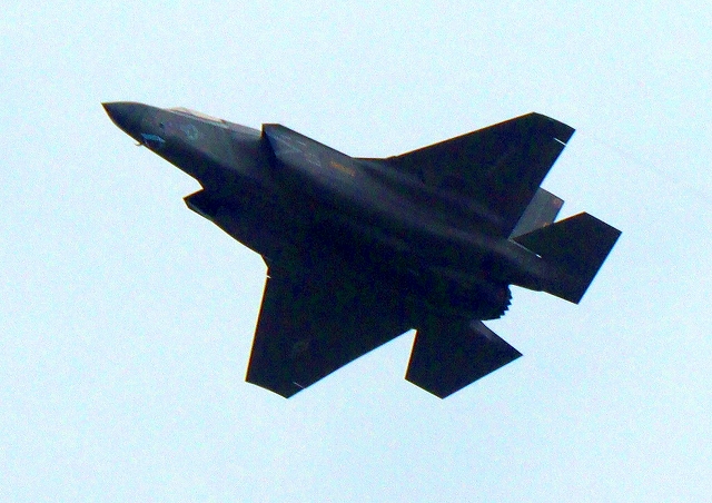 米海兵隊 F-35B ライトニングⅡ 戦闘機(岩国基地)、DT、01番機が旋回 |