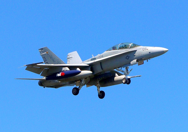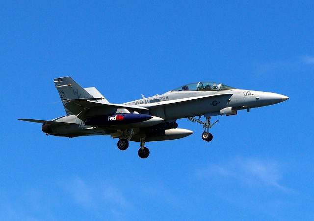 米海兵隊 F/A-18D ホーネット 戦闘攻撃機(岩国基地)、WK、09番機が着陸 |