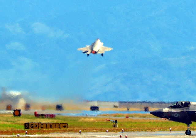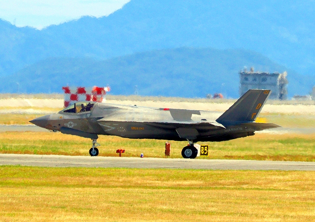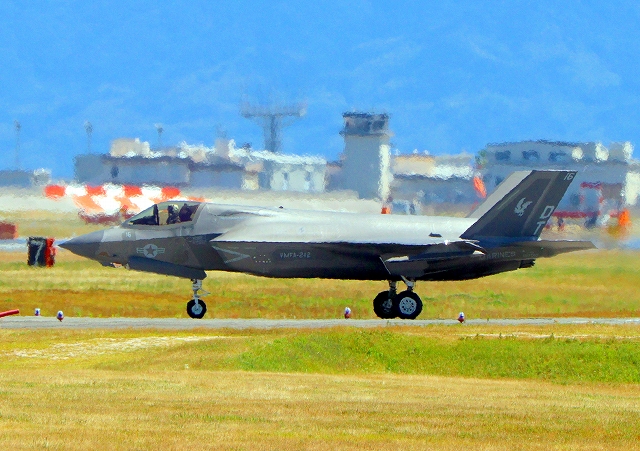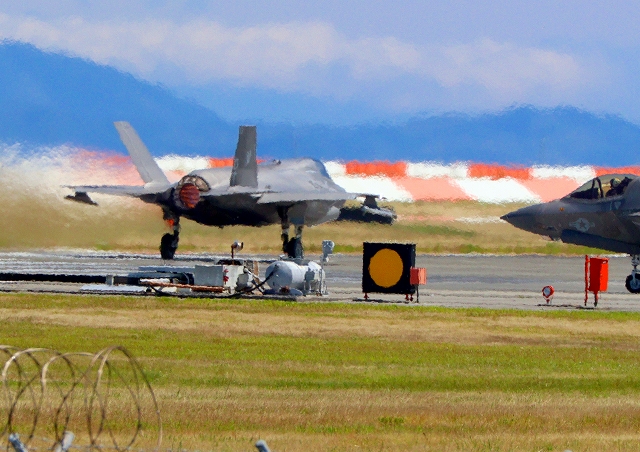 米海兵隊 F-35B ライトニングⅡ 戦闘機(岩国基地)、DT、13番機が離陸 |