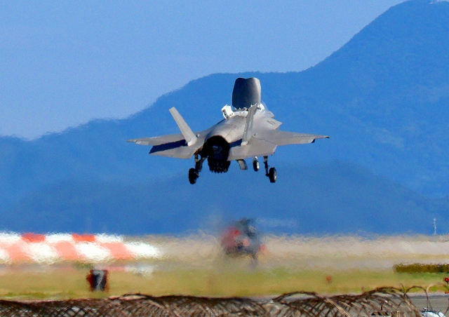 米海兵隊 F-35B ライトニングⅡ 戦闘機(岩国基地)、DT、12番機が短距離着陸 14時11分に離陸した機。1時間03分の飛行でした。( |