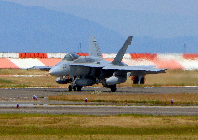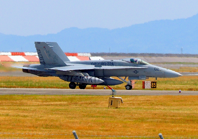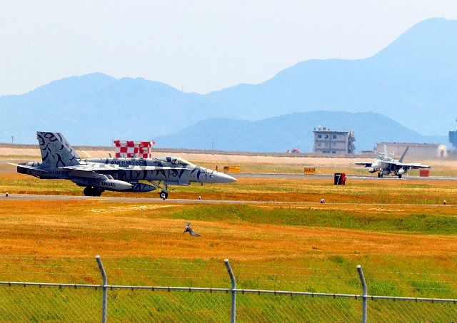 米海兵隊 F/A-18C ホーネット 戦闘攻撃機(岩国基地)、WK、02番機が着陸 |