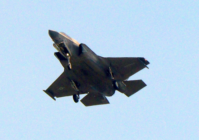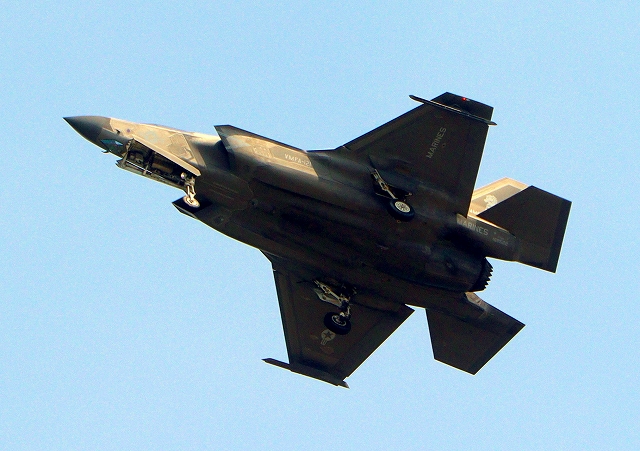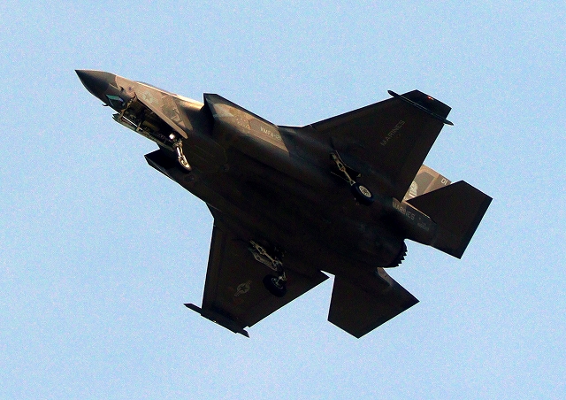 米海兵隊 F-35B ライトニングⅡ 戦闘機(岩国基地)、VK、00番機が旋回 |