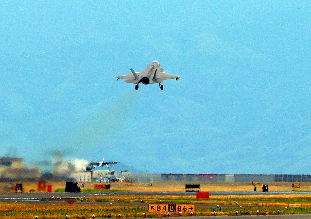 米海兵隊 F-35B ライトニングⅡ 戦闘機(岩国基地)、DT、16番機が離陸 |