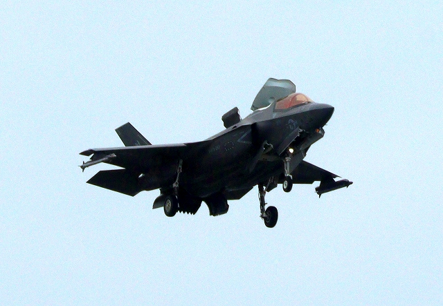 米海兵隊 F-35B ライトニングⅡ 戦闘機(岩国基地)、DT、13番機、16番機が2機編隊で帰還 |