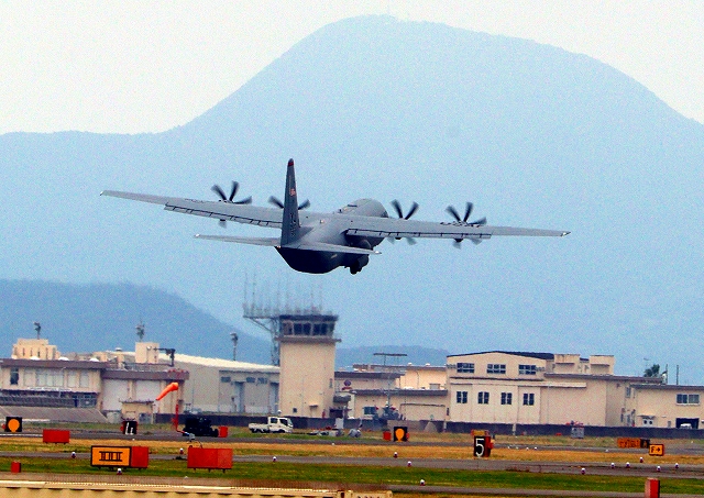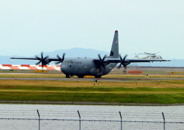 米空軍 C-130J 戦術輸送機 ハーキュリーズ(横田基地)、YJ、5813番機が離陸 |