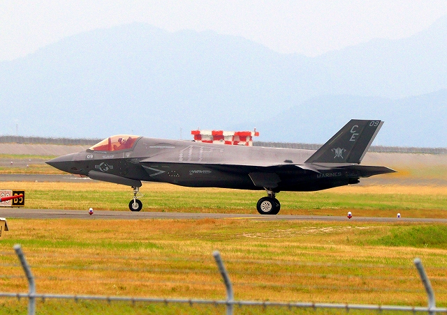 米海兵隊 F-35B ライトニングⅡ 戦闘機(岩国基地)、CE、09番機が離陸 |