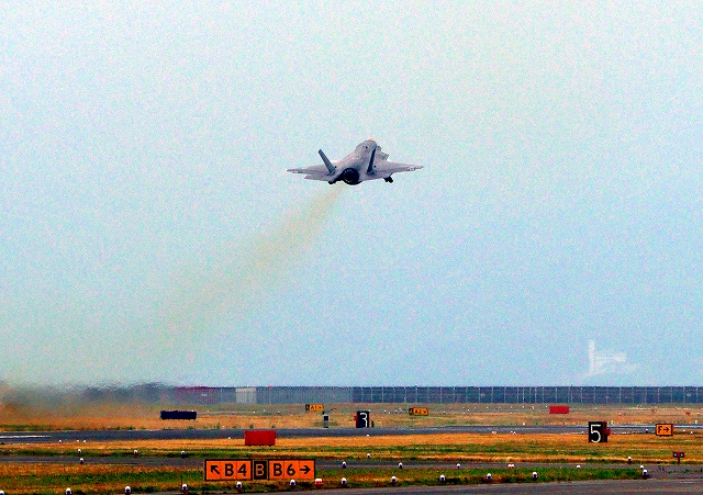 米海兵隊 F-35B ライトニングⅡ 戦闘機(岩国基地)、CE、08番機が離陸 |