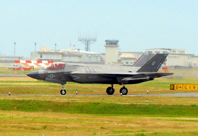 米海兵隊 F-35B ライトニングⅡ 戦闘機(岩国基地)、DT、08番機が離陸 |