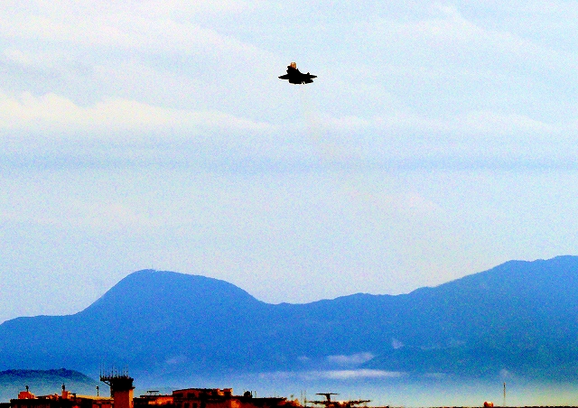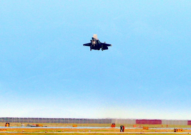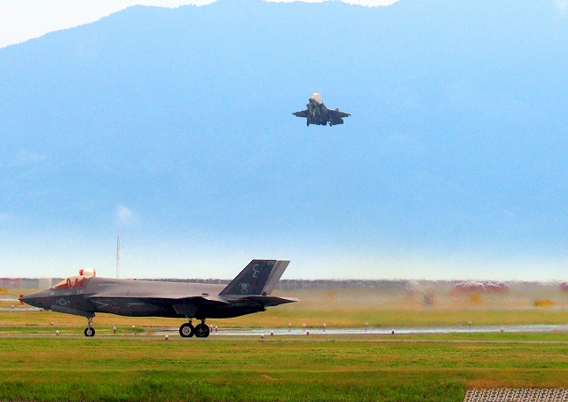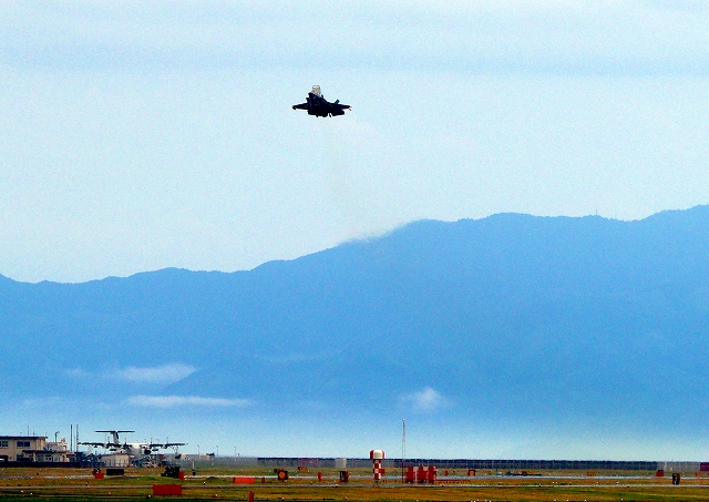 米海兵隊 F-35B ライトニングⅡ 戦闘機(岩国基地)、CE、09番機が短距離離陸 |