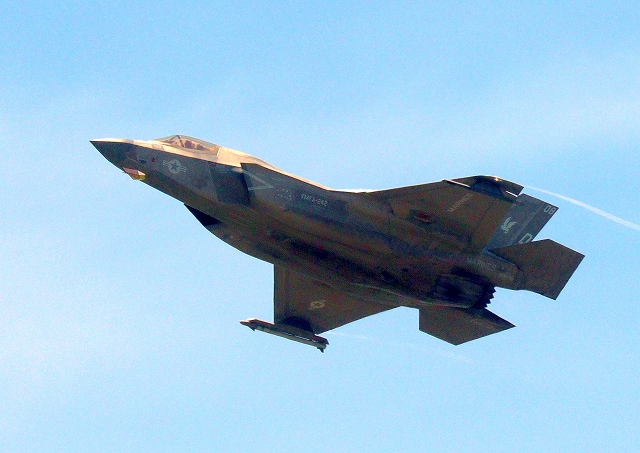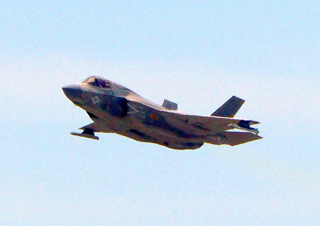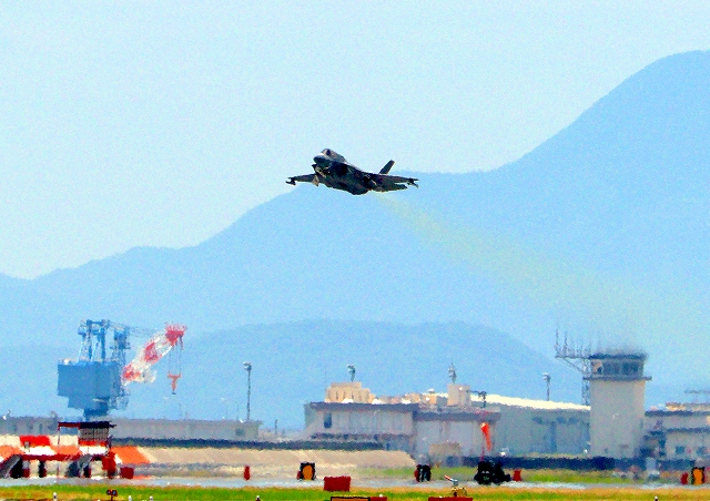 米海兵隊 F-35B ライトニングⅡ 戦闘機(岩国基地)、DT、01番機が離陸 |