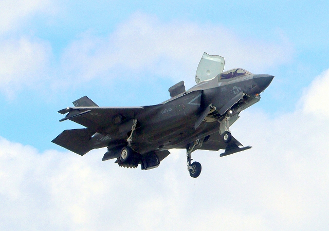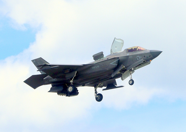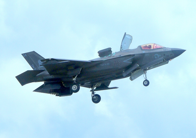 米海兵隊 F-35B ライトニングⅡ 戦闘機(岩国基地)、VK、04番機が帰還、旋回 |