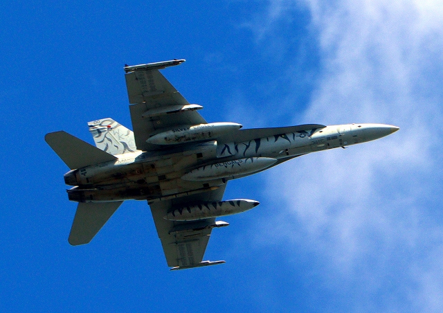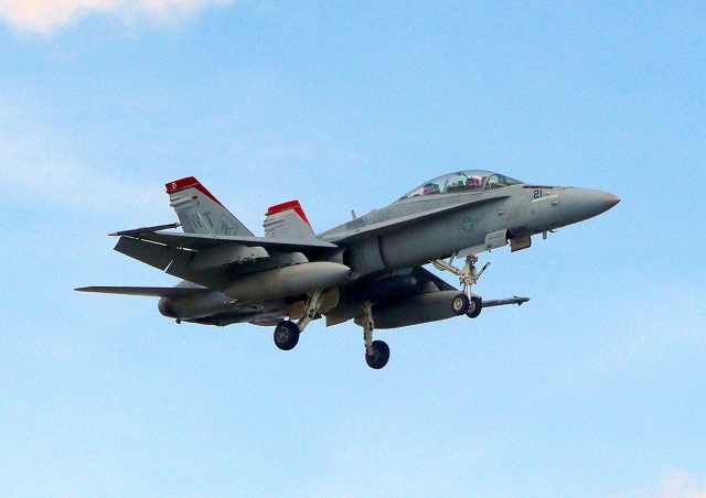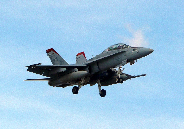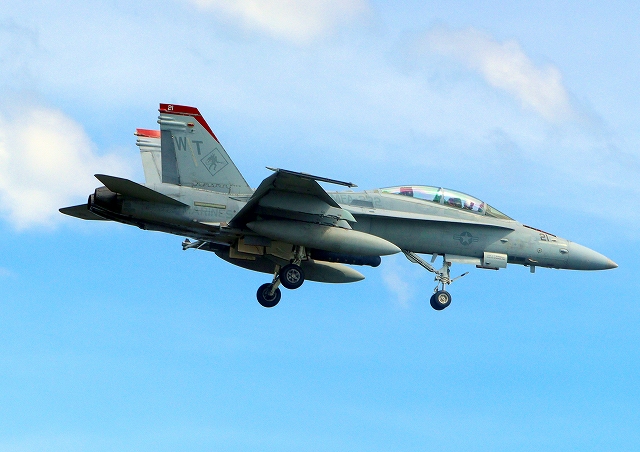 米海兵隊 F/A-18C ホーネット 戦闘攻撃機(岩国基地)、WK、00番機が帰還、旋回 |