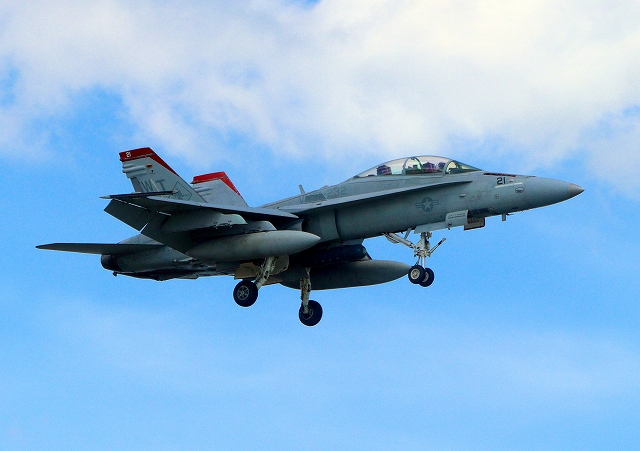 米海兵隊 F/A-18D ホーネット 戦闘攻撃機(岩国基地)、WK、21番機が着陸
