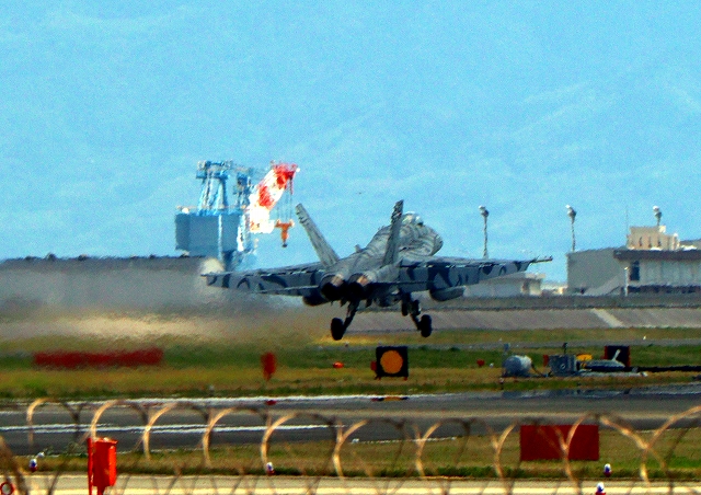 米海兵隊 F/A-18C ホーネット 戦闘攻撃機(岩国基地)、WK、00番機が旋回(2周目)はタッチアンド・ゴーして旋回 |