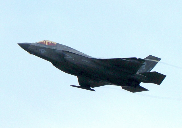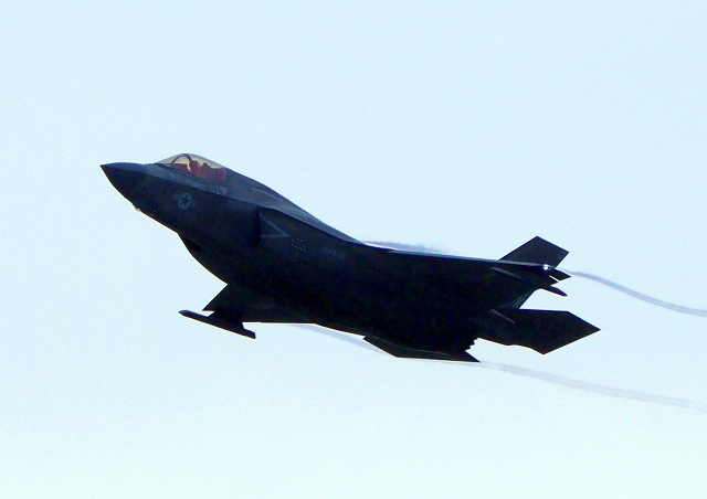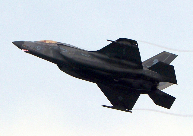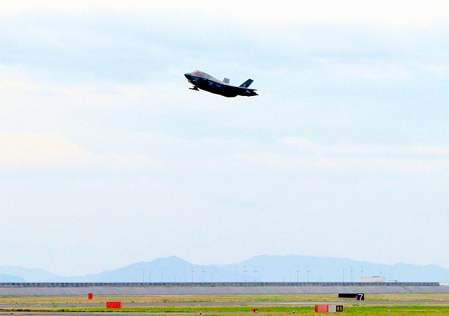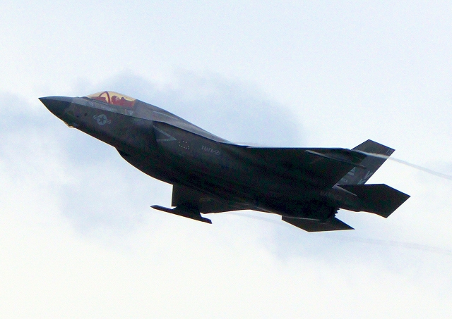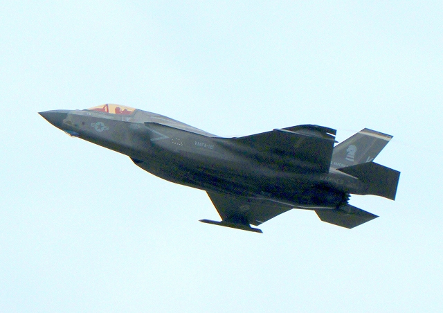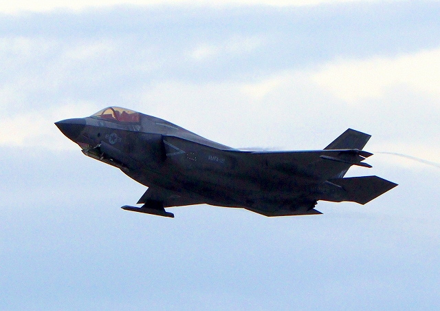 米海兵隊 F-35B ライトニングⅡ 戦闘機(岩国基地)、VK、13番機が離陸 |