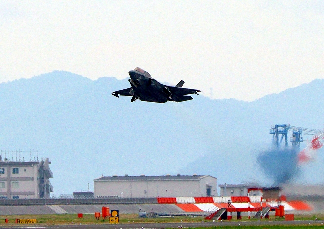 米海兵隊 F-35B ライトニングⅡ 戦闘機(岩国基地)、VK、11番機が離陸 |