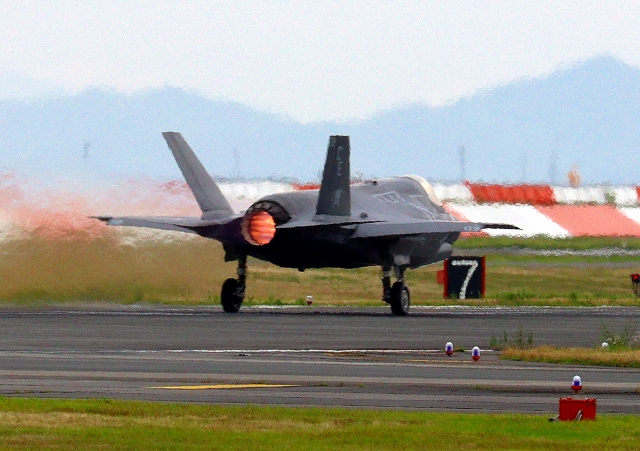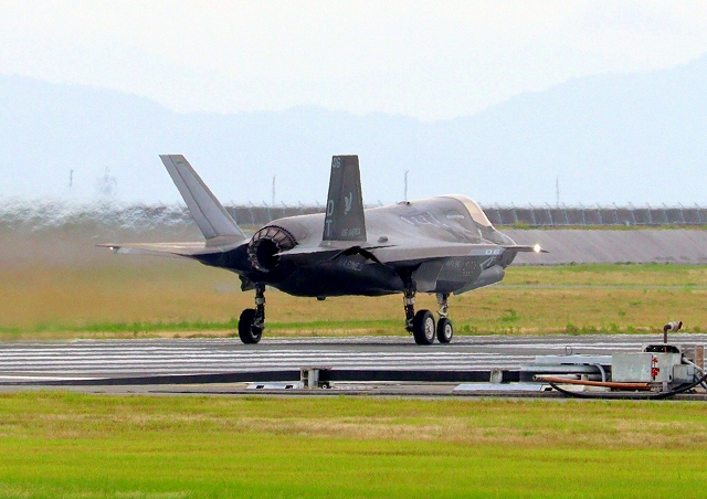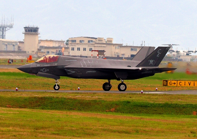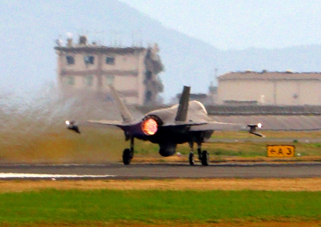 米海兵隊 F-35B ライトニングⅡ 戦闘機(岩国基地)、DT、15番機が離陸 |