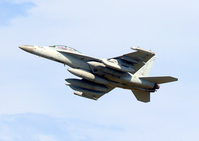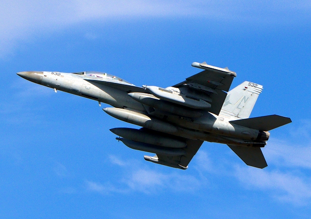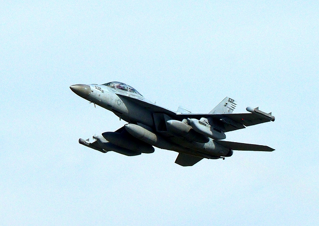 米海軍艦載機 EA-18G グラウラー 電子戦戦闘攻撃機(三沢基地)、NL、532番機が離陸 |