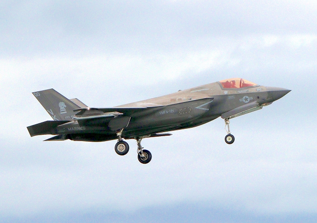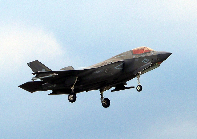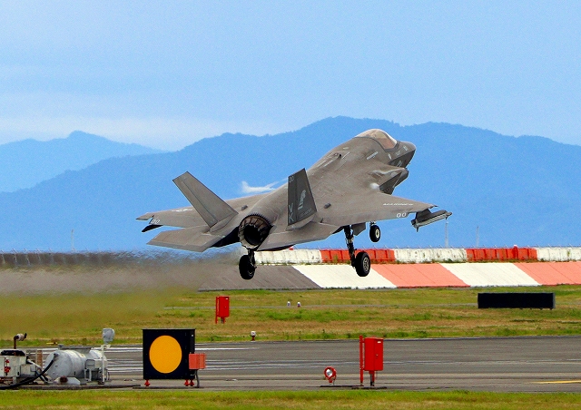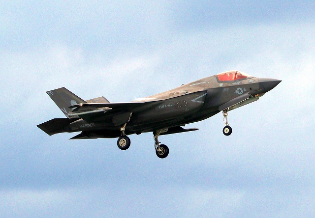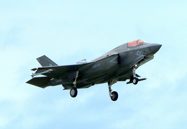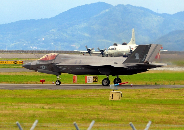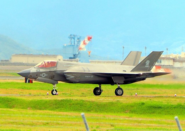 米海兵隊 F-35B ライトニングⅡ 戦闘機(岩国基地)、VK、04番機はこのあと離陸(撮影失敗) |