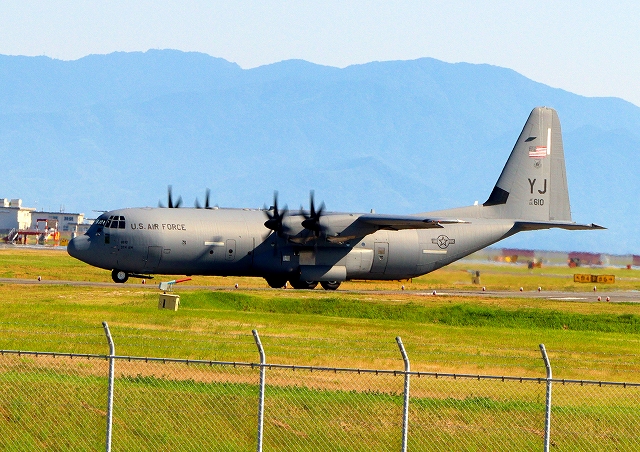 米空軍 C-130J 戦術輸送機 ハーキュリーズ(横田基地)、YJ、610番機 このあたりで退散。 |