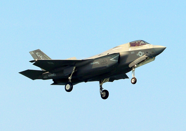 米海兵隊 F-35B ライトニングⅡ 戦闘機(岩国基地)、DT、11番機が着陸 |