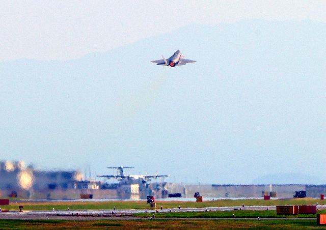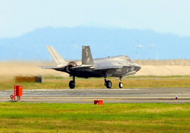米海兵隊 F-35B ライトニングⅡ 戦闘機(岩国基地)、DT、15番機が離陸 |