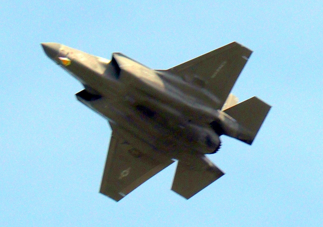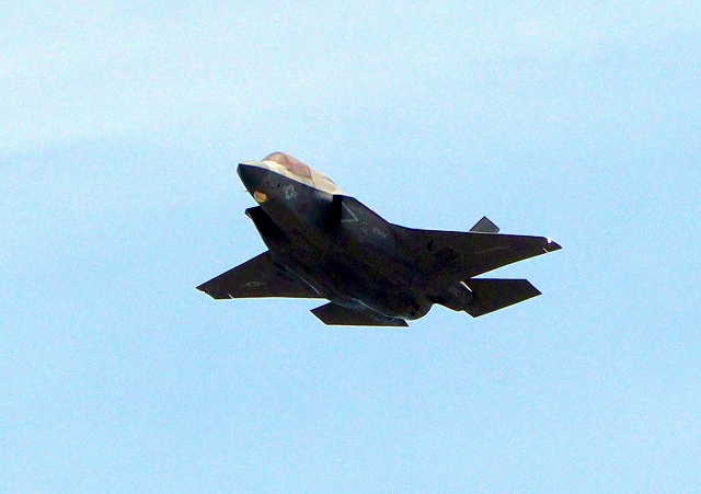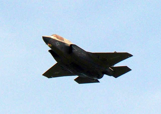 米海兵隊 F-35B ライトニングⅡ 戦闘機(岩国基地)、DT、15番機が旋回、2周目 |