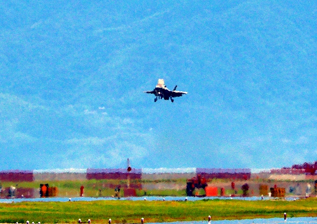 米海兵隊 F-35B ライトニングⅡ 戦闘機(岩国基地)、CE、05番機が着陸 |