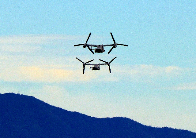 米海兵隊 MV-22B オスプレイ(普天間基地)、「竜」、EP、04番機、10番機が離陸 |