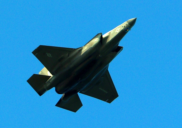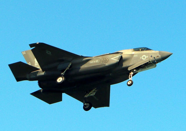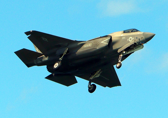 米海兵隊 F-35B ライトニングⅡ 戦闘機(岩国基地)、VK、02番機が旋回(2周目) |