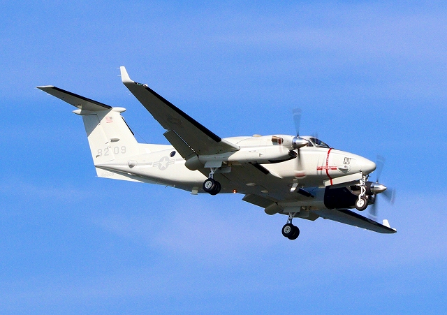米海兵隊 UC-12W ヒューロン 軽輸送機(岩国基地)、8209番機が着陸 |