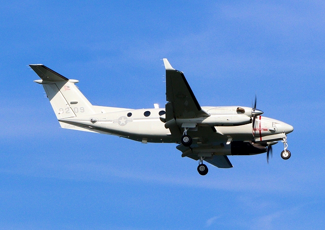 米海兵隊 UC-12W ヒューロン 軽輸送機(岩国基地)、8209番機が旋回 |