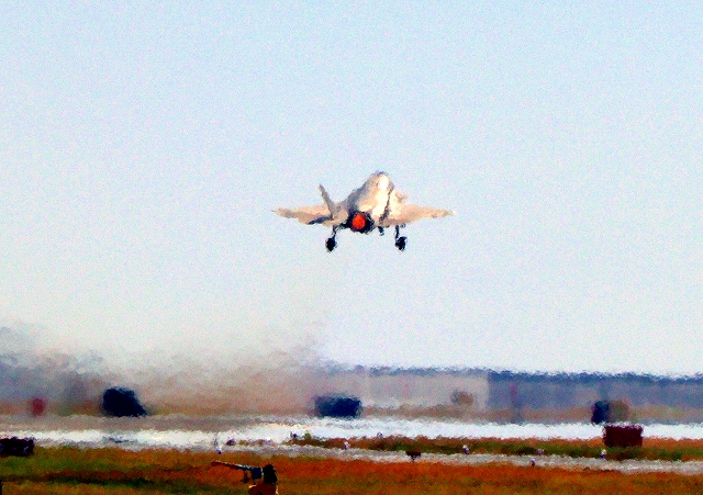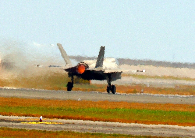 米海兵隊 F-35B ライトニングⅡ 戦闘機(岩国基地)、VK、00番機が離陸 |