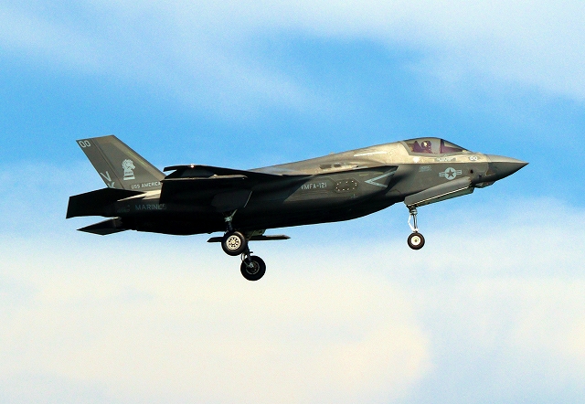米海兵隊 F-35B ライトニングⅡ 戦闘機(岩国基地)、VK、00番機が着陸 |