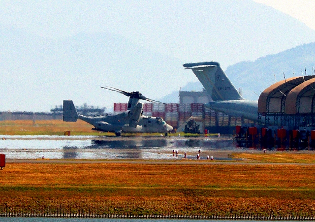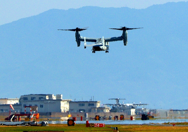 米海兵隊 MV-22B オスプレイ(普天間基地)、「竜」、EP、14番機が着陸 |