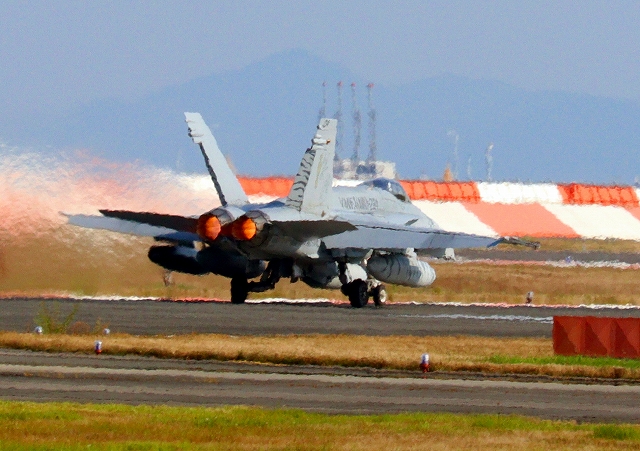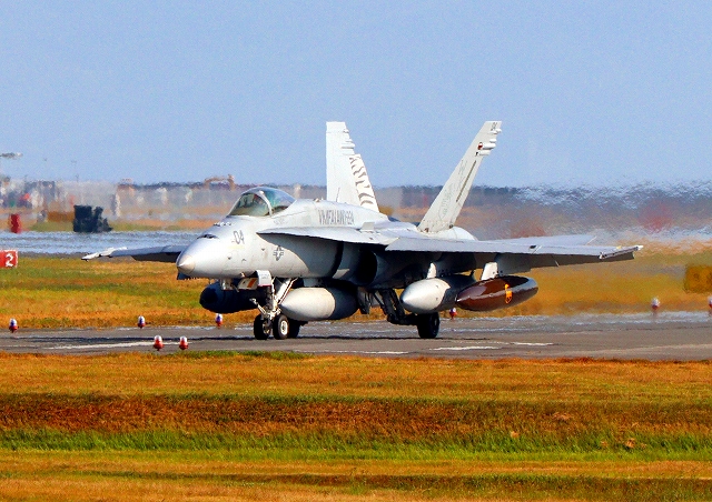 米海兵隊 F/A-18C ホーネット 戦闘攻撃機(岩国基地)、WK、04番機が離陸 このあたりでサヨナラ! |