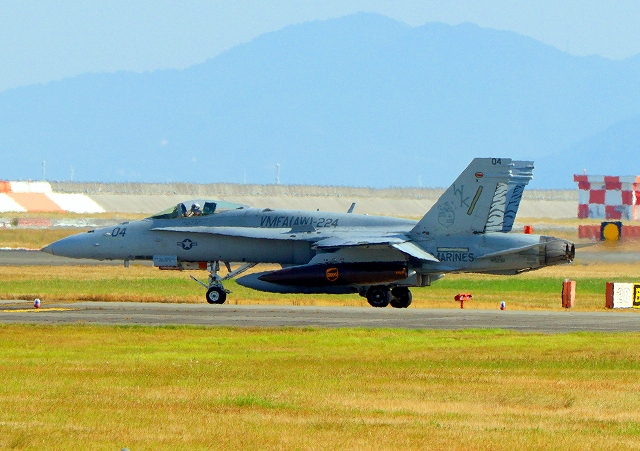米海兵隊 F/A-18C ホーネット 戦闘攻撃機(岩国基地)、WK、04番機が出てきました。 |