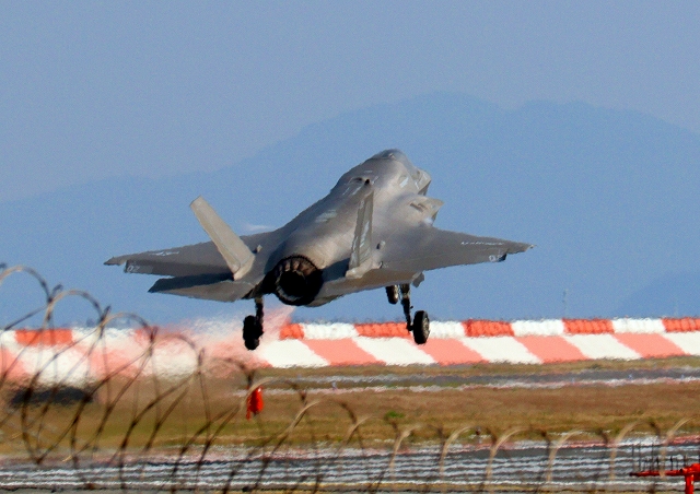 米海兵隊 F-35B ライトニングⅡ 戦闘機(岩国基地)、VK、02番機が着陸