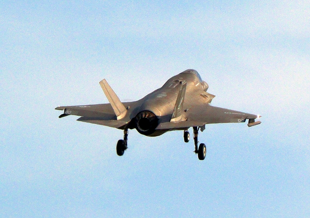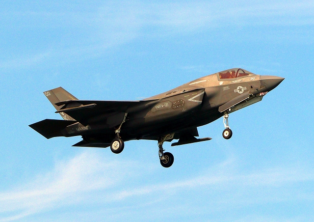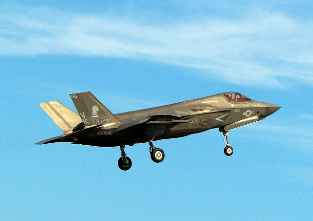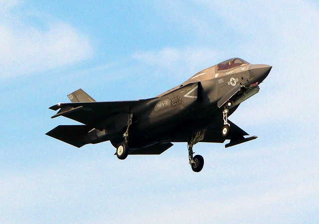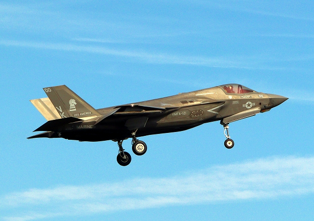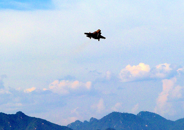 米海兵隊 F-35B ライトニングⅡ 戦闘機(岩国基地)、VK、00番機が旋回(2周目) |
