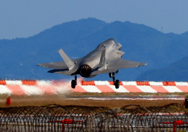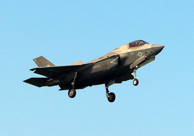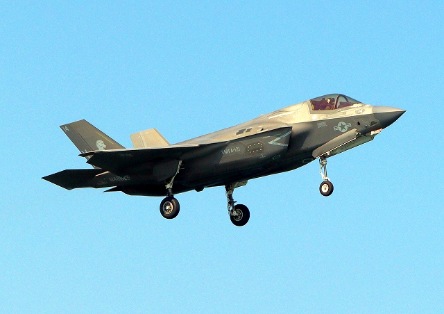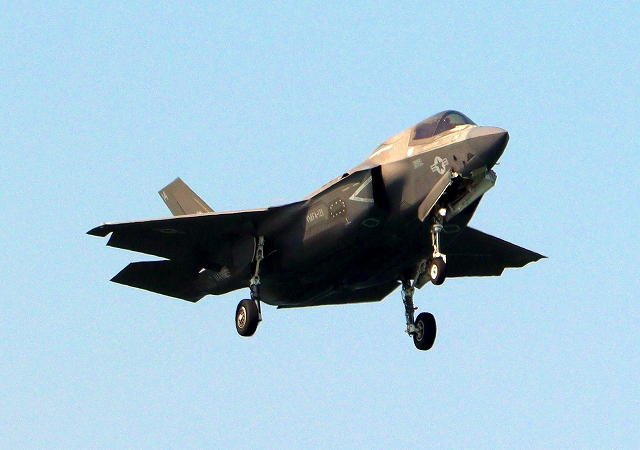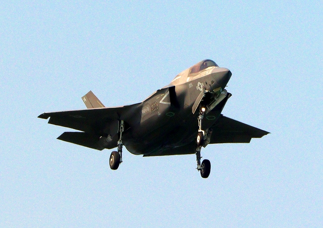 米海兵隊 F-35B ライトニングⅡ 戦闘機(岩国基地)、VK、14番機が旋回 |