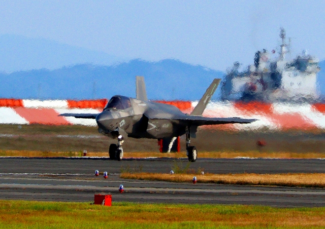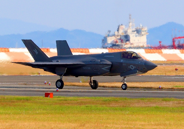 米海兵隊 F-35B ライトニングⅡ 戦闘機(岩国基地)、DT、11番機が着陸 |