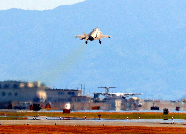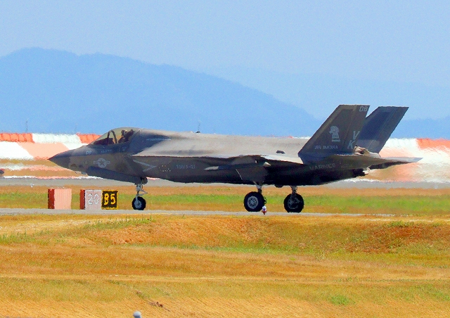 米海兵隊 F-35B ライトニングⅡ 戦闘機(岩国基地)、VK、08番機が離陸 |