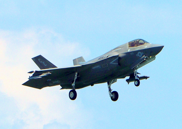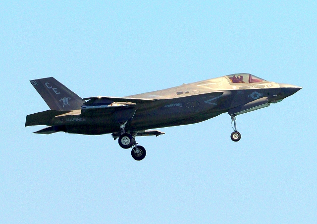 米海兵隊 F-35B ライトニングⅡ 戦闘機(岩国基地)、CE、01番機が着陸 |